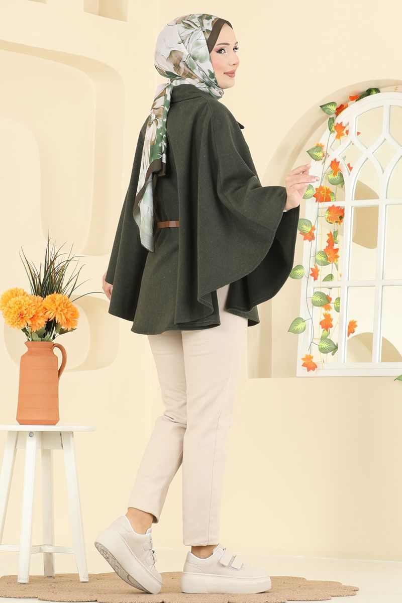 Kaşe Kumaşlı Gömlek Yaka Panço - Haki