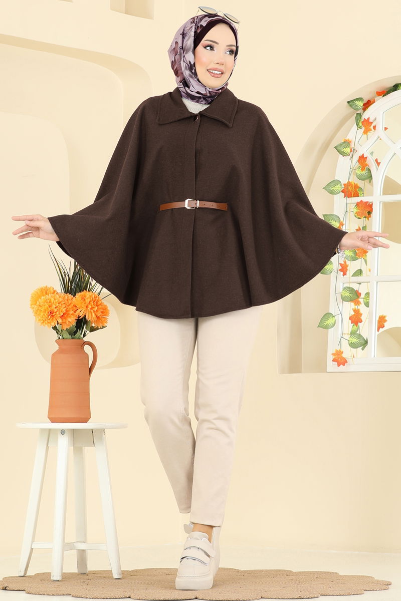 Kahverengi Gömlek Yakalı Kaşe Panço