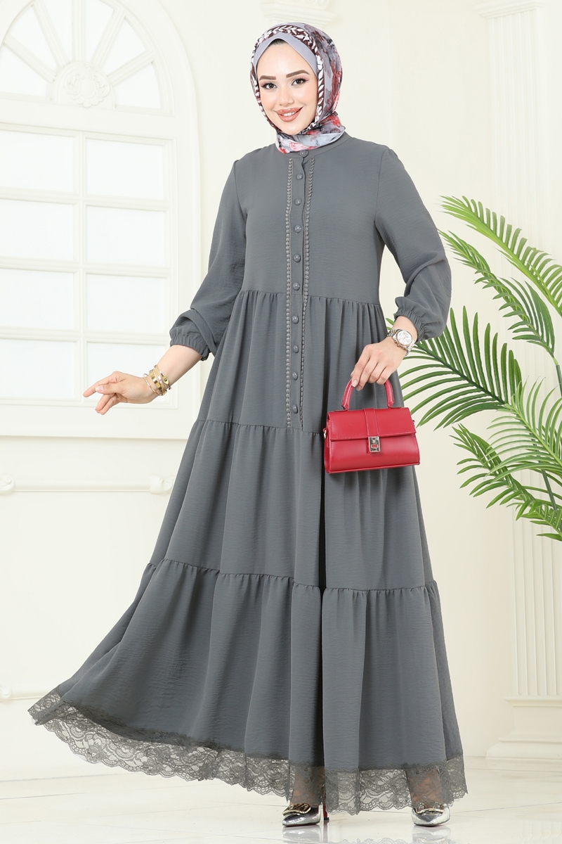 Güpür Detay Aerobin Elbise 380DVL817-MS Antrasit