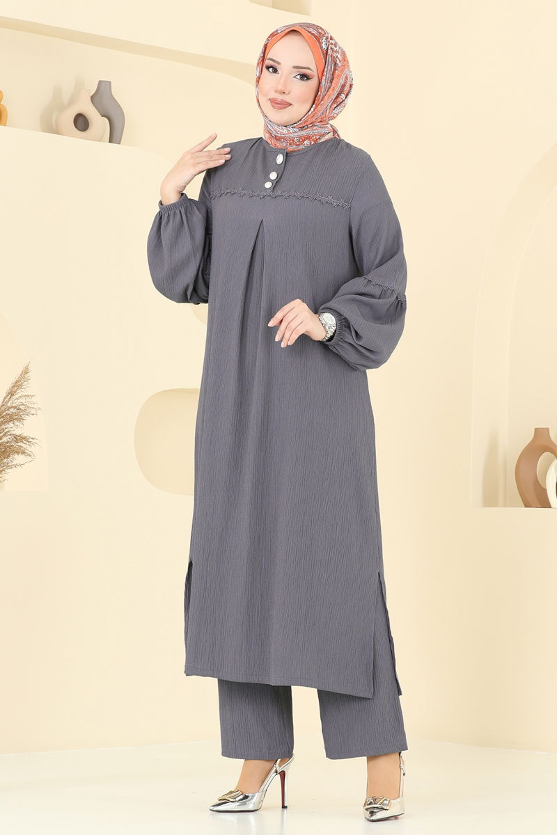 • Antrasit Renkli Güpür Detaylı Bürümcük Kıyafet Takımı