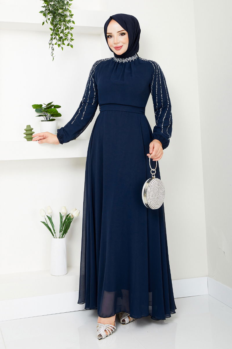Evening Dresses with Embroidered Sleeves LaciKumaş Feature: Made of first-class chiffon fabric. It can be used in Four Seasonal seasons. Product Feature: New season hijab is a fashion product. The product is a Half-Judge collar. It is lined. The product is zipped at the back. The belt is included in the product, it may not be used on request. Stones are glue. The cuff is rubberized. There may be a tonal difference in the product due to concept photo shoots. Washing : Only dry cleaning should be done.Belt Feature: The two ends of the belt are sewn to prevent the belt from fluctuating, the middle part is left empty (seamless). (The item on the model is size 38.) Product Length : 140 cm Mannequin Dimensions : Height : 1.67 (Without Shoes)Chest: 80Bel : 68Basen :96NOTE: The product mold is a one-to-one mold and it is recommended to order your own size. The exchange time for this product is 24 hours. Since the product is an evening dress product, for exchange, you must send it to us with the cargo you received no later than 24 hours after the product reaches you.Our evening dress model is a hijab product with embroidered sleeves. It can be conveniently used during the four seasons season and requires only dry cleaning. It is made of premium chiffon fabric and has a half-prevailing collar design. It is lined and zipped at the back (The item on the model is size 38.). In order for the belt not to fluctuate, the two ends were sewn, and the middle part was left empty (seamless). The belt is included in the product, can be used on request. The stones are adhesive and the cuff is rubberized.Weight (Kg):0.5