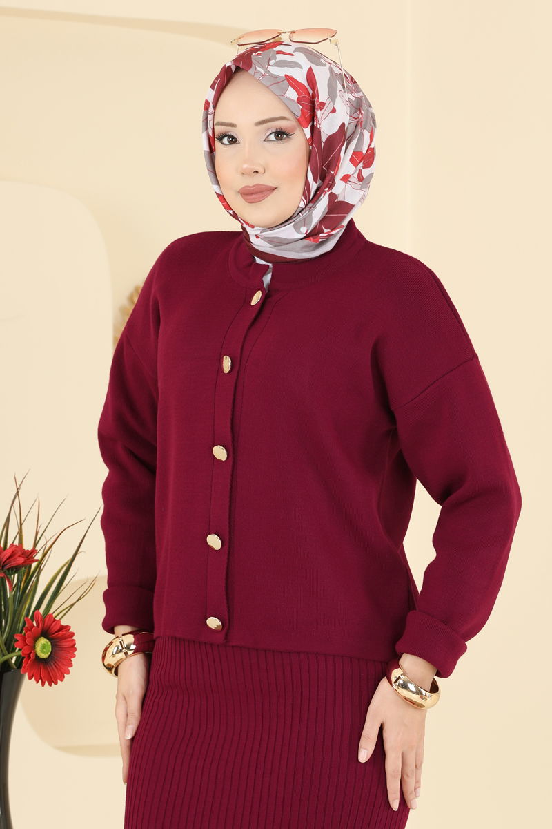 Hırkalı Triko Takım 1438MT581-MS Bordo