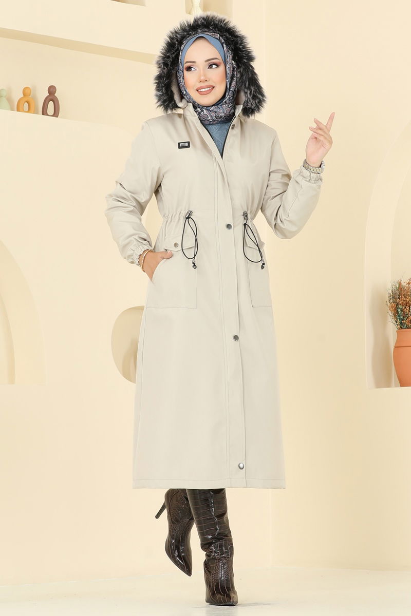 Ürün Detayları: Yeni sezon tesettür moda ürünü. Beli çekme bağcıklı yapısı mevcut. Ürün kapşonludur ve yakası dolaylıdır. İç yüzeyi kürkle kaplıdır. Ürün önden fermuar kapamalıdır. Kapşon çıkartılabilir, kullanımı tercihe bağlıdır. Cep detayları bulunmaktadır. Manşetleri elastiktir.Renk tonları çekim koşulları sebebiyle farklılık gösterebilir.