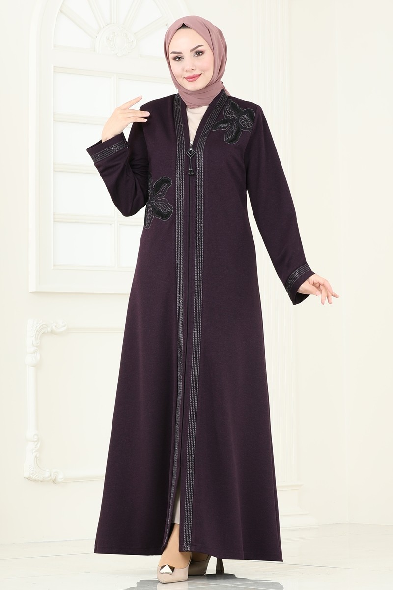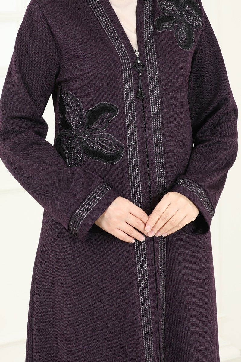 İşleme Detaylı Pardesü Ferace 2247EDM718-MS Mor