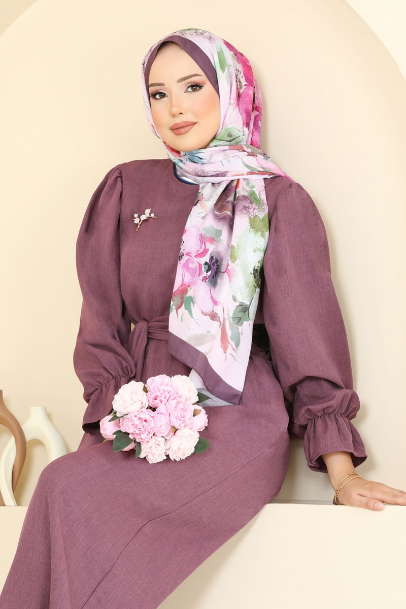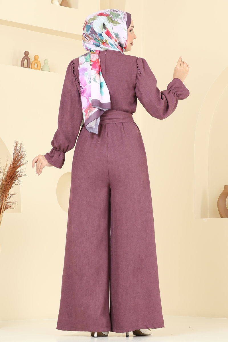 The Belted Sofia Linen Jumpsuit is a modest wear suitable for all seasons, crafted from special Sofia linen fabric which offers comfort even on warm summer days. This jumpsuit can be cleaned with gentle washing at 30 degrees, ensuring ease of care. Its bicycle neck design with a zipper at the back presents a contemporary look, while the tie-able belt at the side adjusts to fit various sizes. With elastic cuffs, this piece will become an indispensable part of your wardrobe.