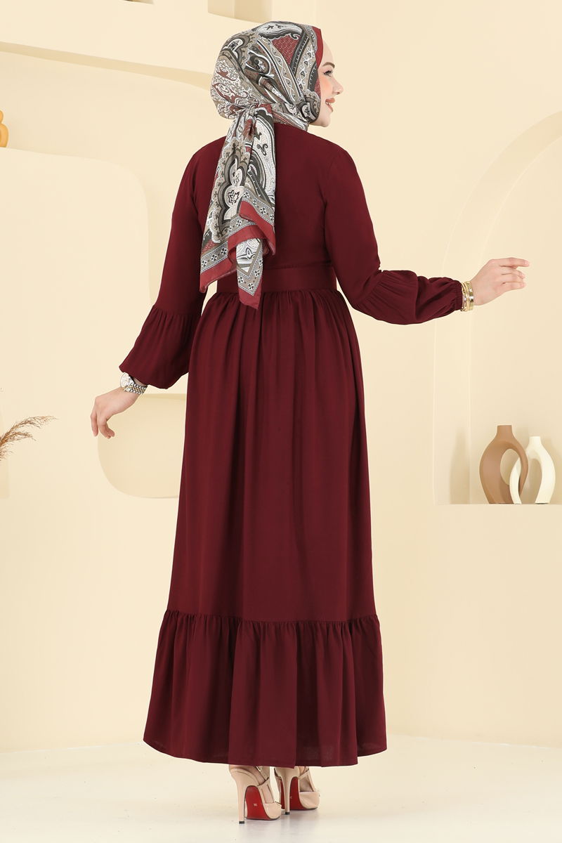 Kaplama Kemerli Elbise 7123BG354-MS Bordo