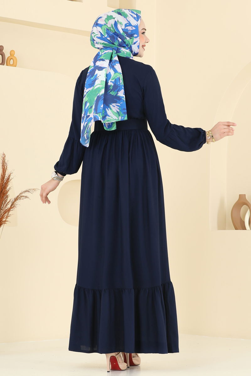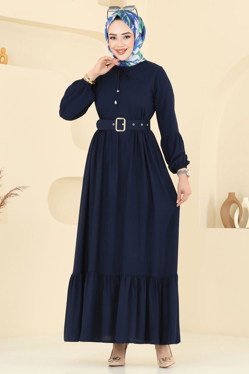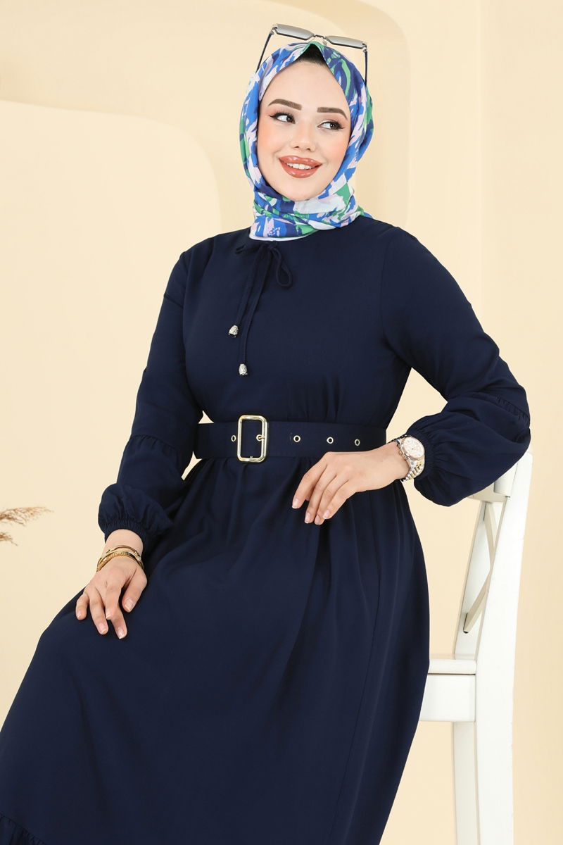 Elbise Özellikleri: Tesettür modası için tasarlanmış yeni sezon ürünüdür. Model bisiklet yaka tipindedir ve astarsızdır. Bel kısmı dikişli ve yanlarında bağcık detayları bulunmaktadır. Ürüne dahil olan kemer isteğe göre çıkarılabilir. Manşetler elastik yapıdadır. Fotoğraflamadan dolayı renk tonlarında farklılık görülebilir.