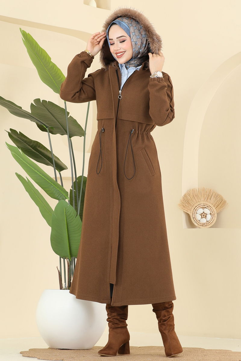 Kapşonu Kürklü Kaşe Kaban 6661YG95-MS Taba