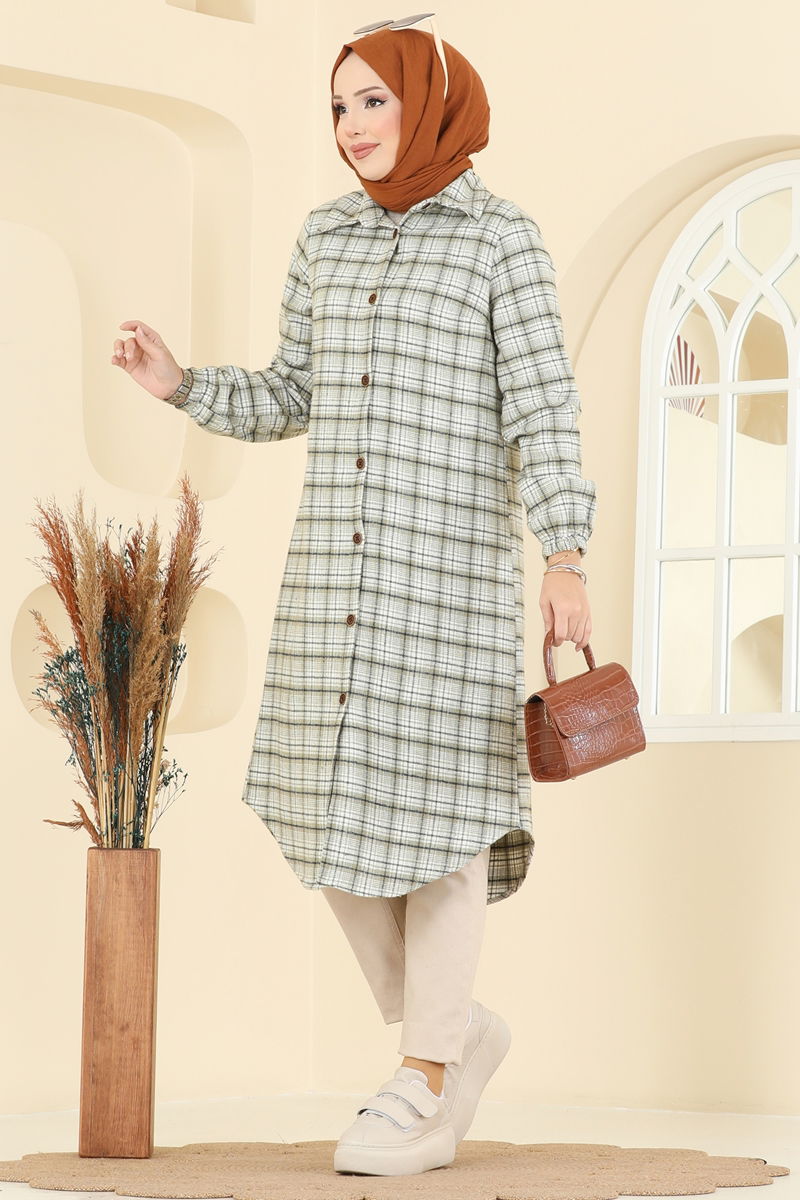 Kare Desenli Ekose Tunik 3068KTR750-MS Çağla