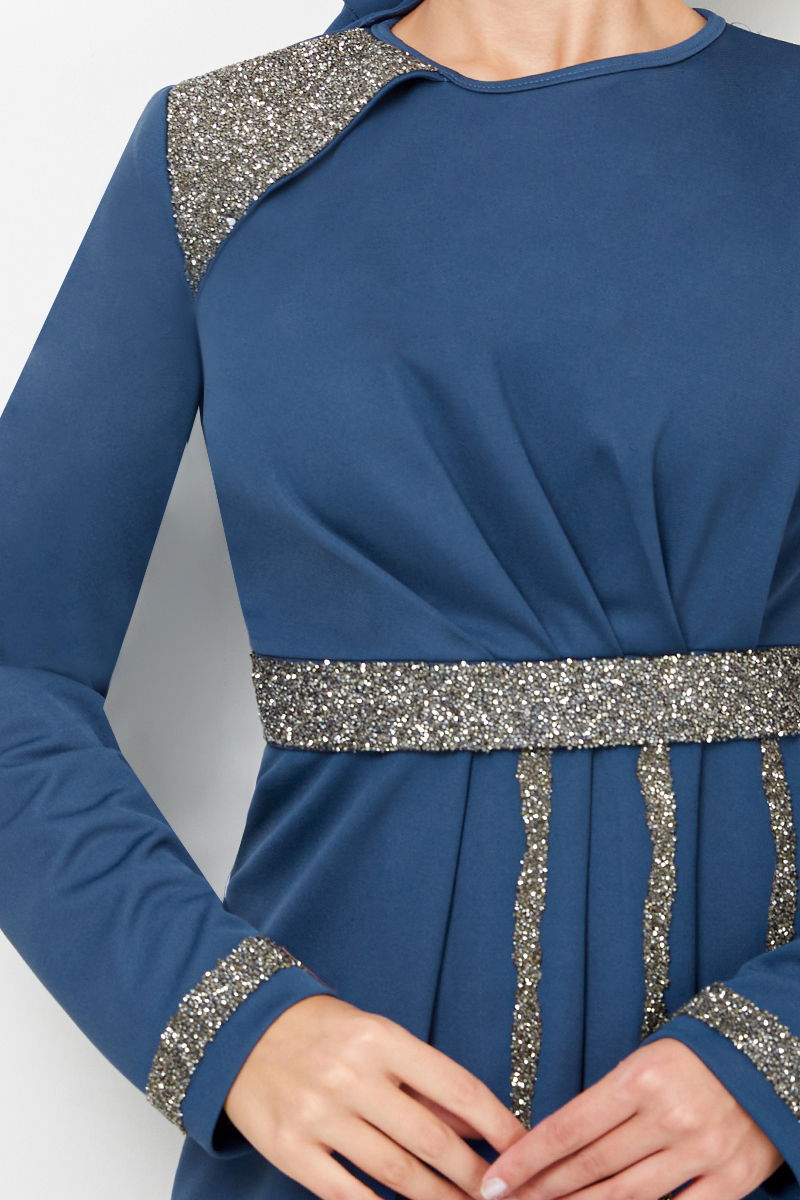 • Kemeri Taş İşlemeli Abiye İndigo