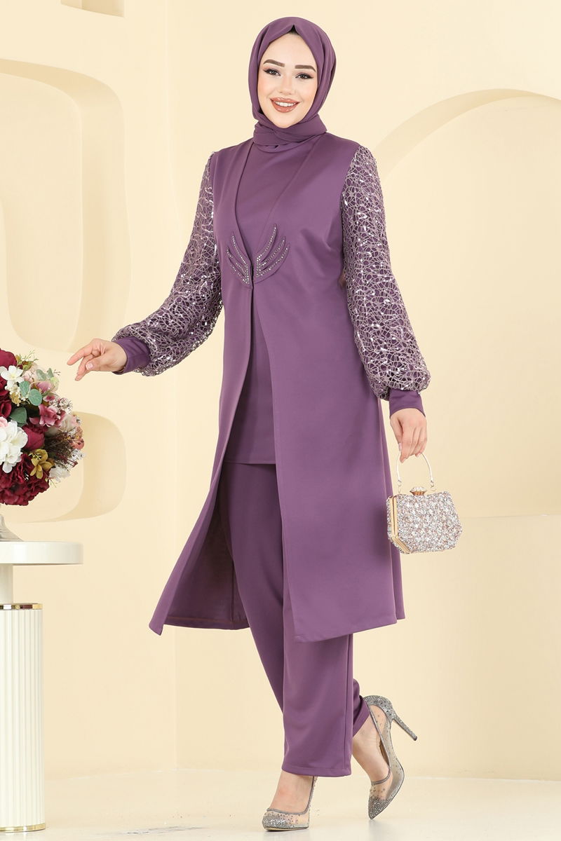 Kolları Fileli Şık Takım ASM2832-MS Lila