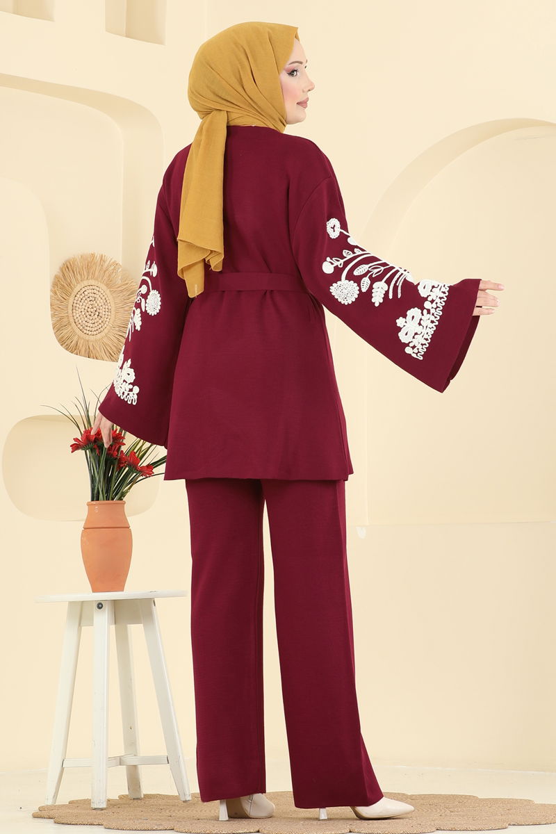 Kolları Nakış İşlemeli Takım 512MT581-MS Bordo