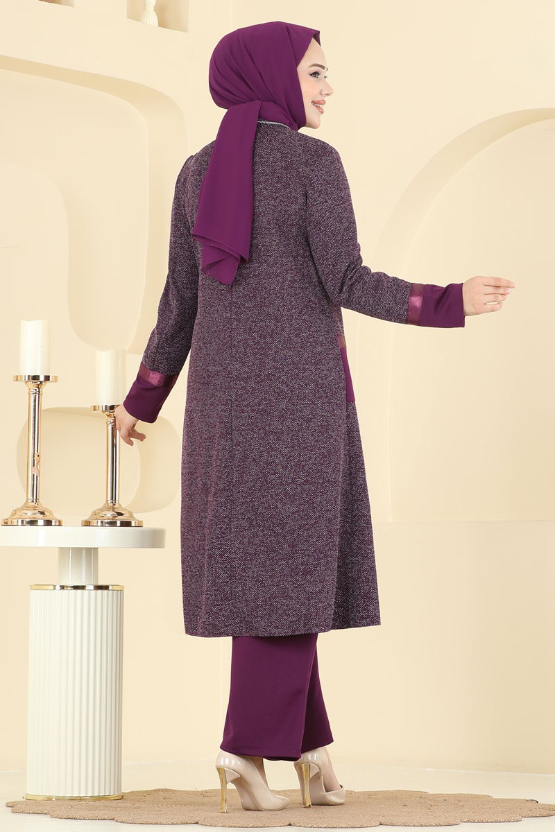 Kolye Detaylı İkili Takım 2838ASMK1074-MS Mürdüm