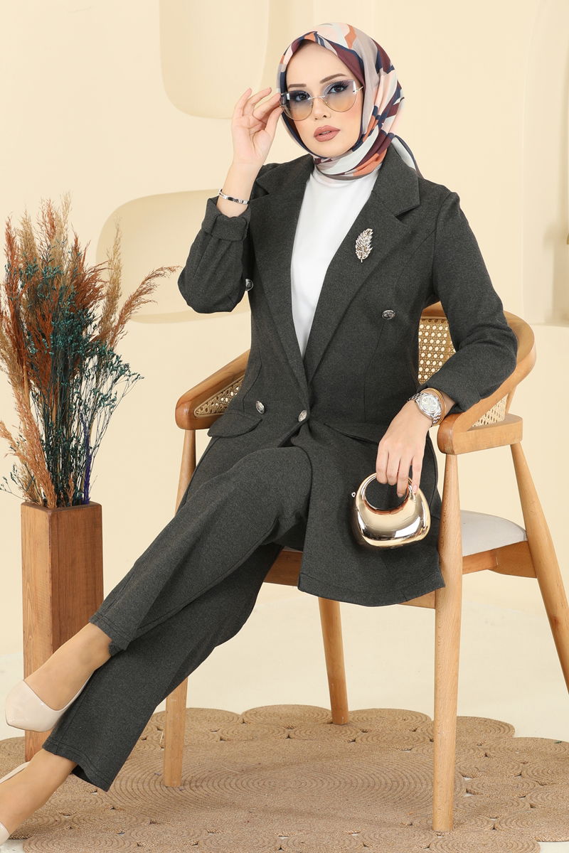 Kruvaze Yaka Ceketli Takım 2766SL432-MS Haki