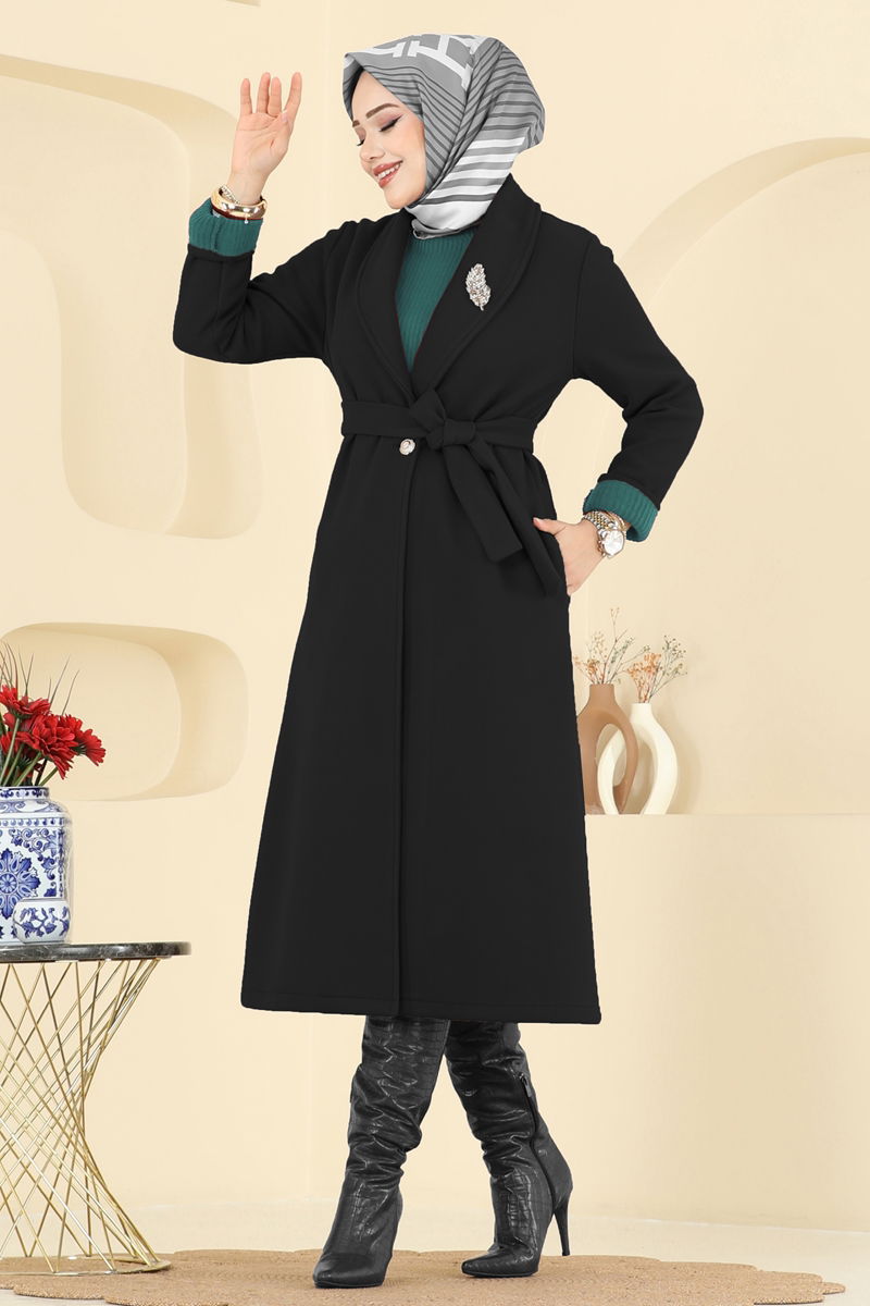 Kruvaze Yaka Kaşe Kaban 6663YG95-MS Siyah