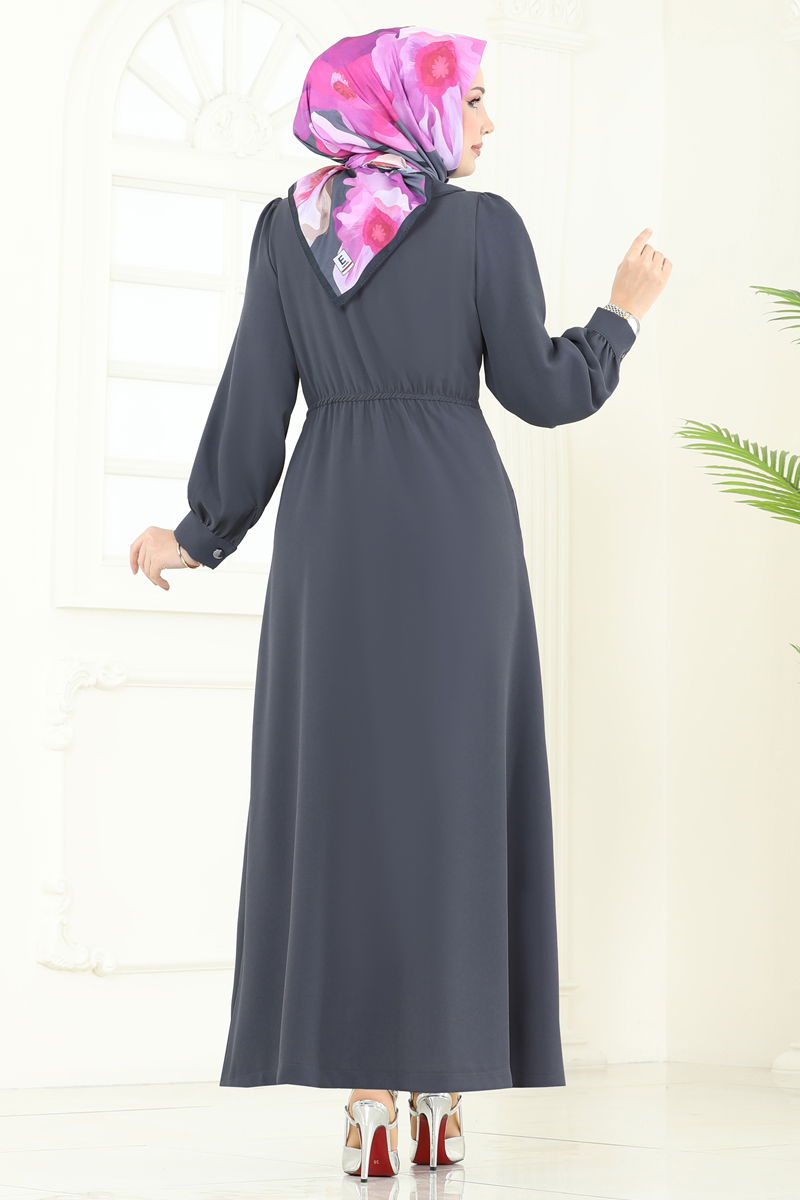 Kruvaze Yaka Tesettür Kap 6214BSK463-MS Antrasit