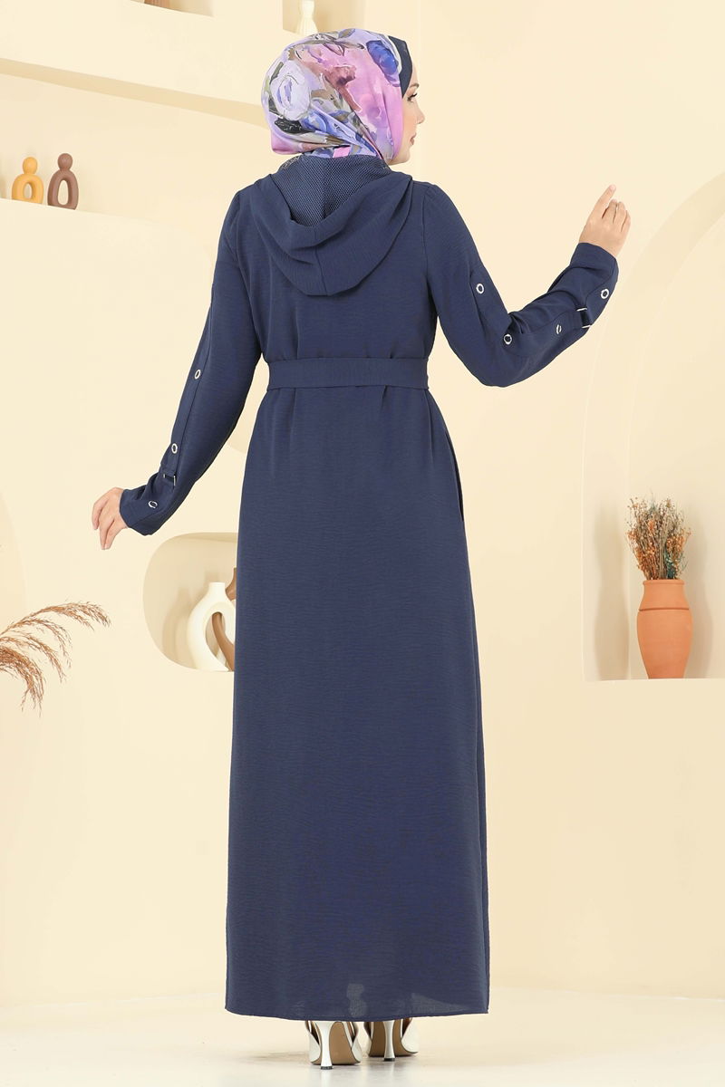 Ürün Detayları: Tesettür modasına uygun yeni sezon tasarımıdır. Kuş gözü deseni trenddir. Üzeri düğmeli olup, iç kaplamasızdır. Kapüşon sabittir ve iç kısmında file detay bulunur. Elbisenin kemer kısmı çıkartılabilir ve dâhildir. Renk tonları çekimlerden dolayı farklılık gösterebilir.