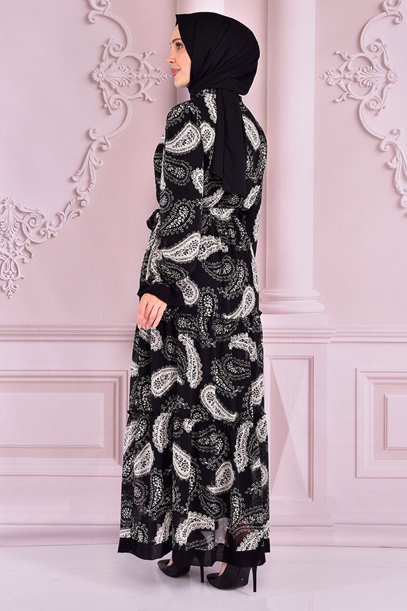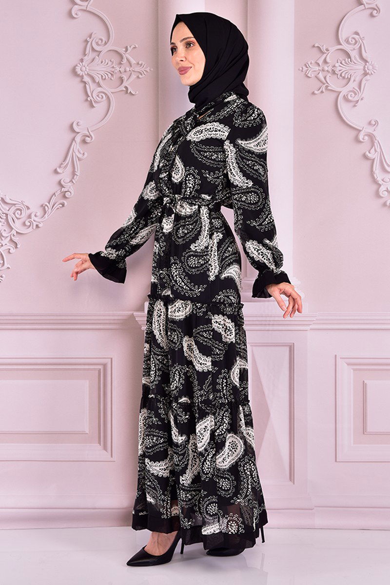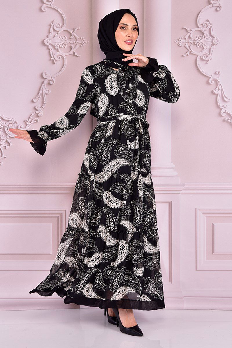 Kuşaklı Astarlı Şifon Elbise Siyah NEV14860