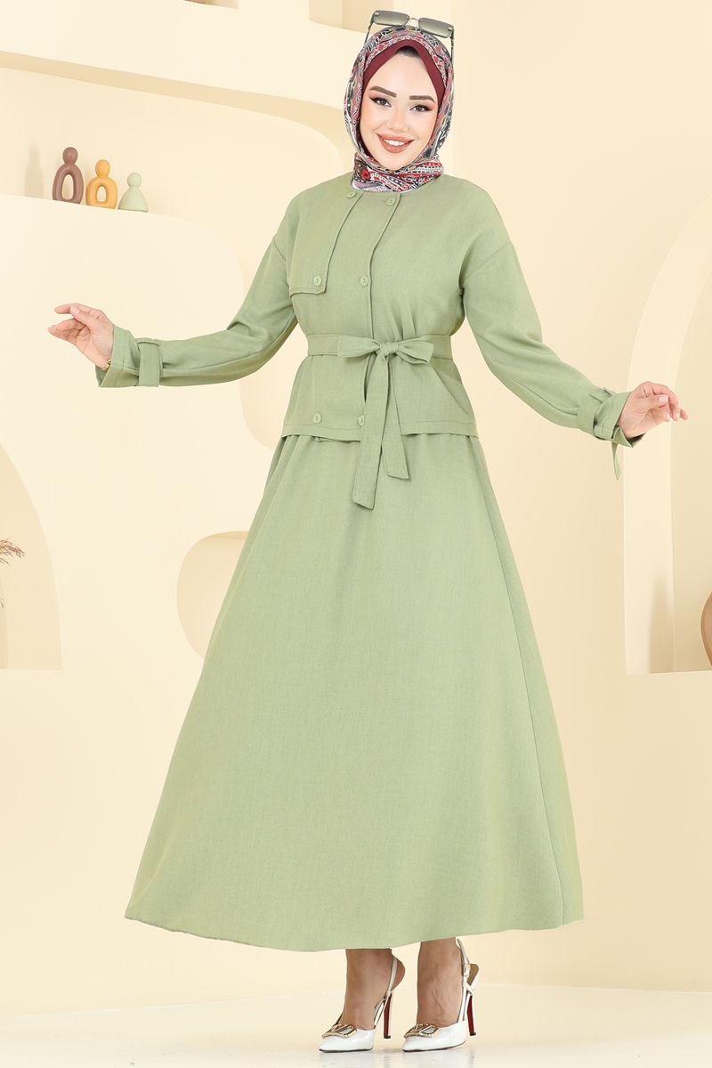 Ürün Detayları : Tesettür modasına uygun yeni sezon ürünü. Tasarımda bisiklet yaka kullanılmıştır. Ön kısım düğmeli. Astarsız yapısı vardır. Etek kısmının beli lastiklidir.Renk tonları çekim koşullarına bağlı olarak farklılık gösterebilir.