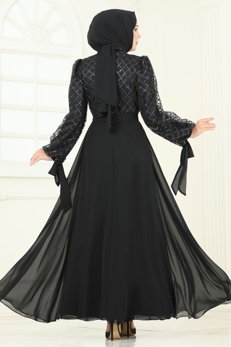 Manşeti Bağcık Detaylı Şifon Abiye 5704EDF311-MS Siyah