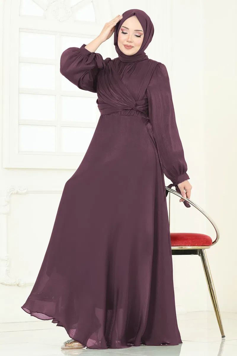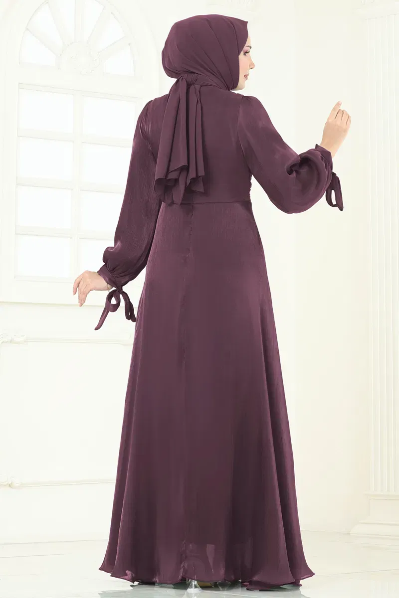 Manşeti Bağcıklı Organze Abiye 6220BSK463-MS Koyu Gül Kurusu