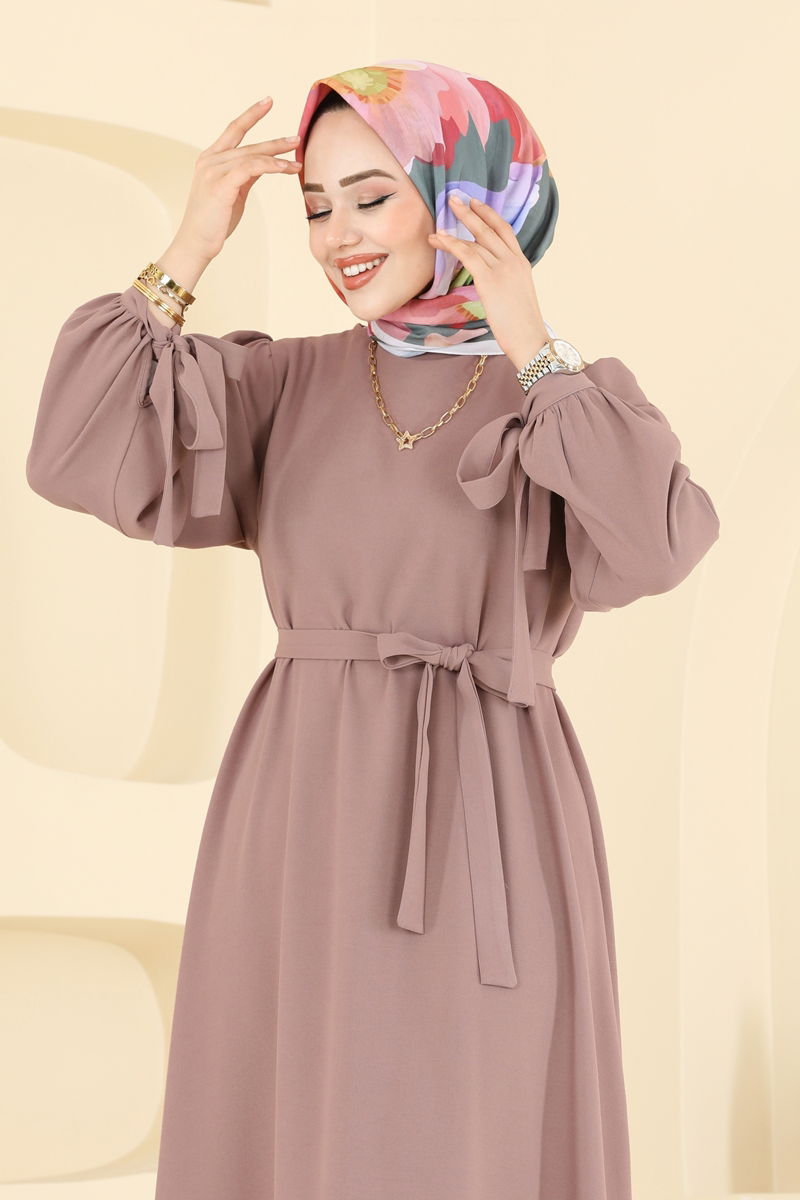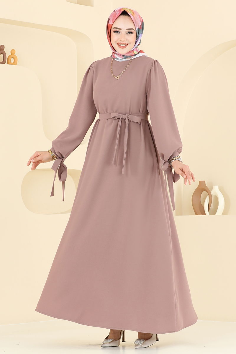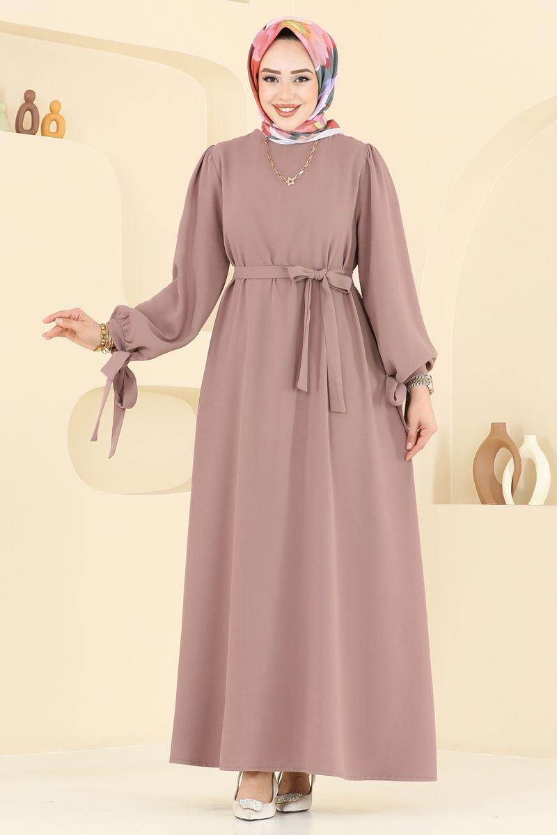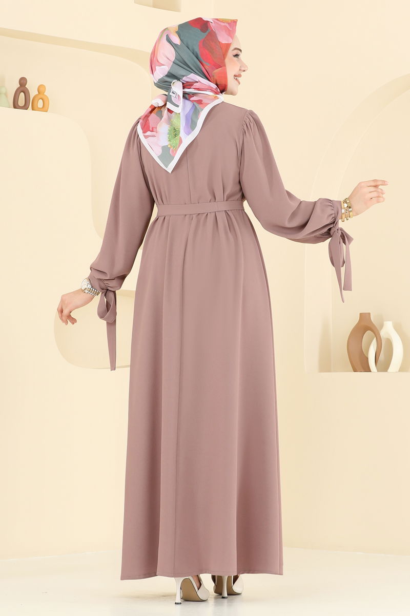 Manşeti Bağcıklı Tesettür Elbise 7121BG354-MS Vizyon