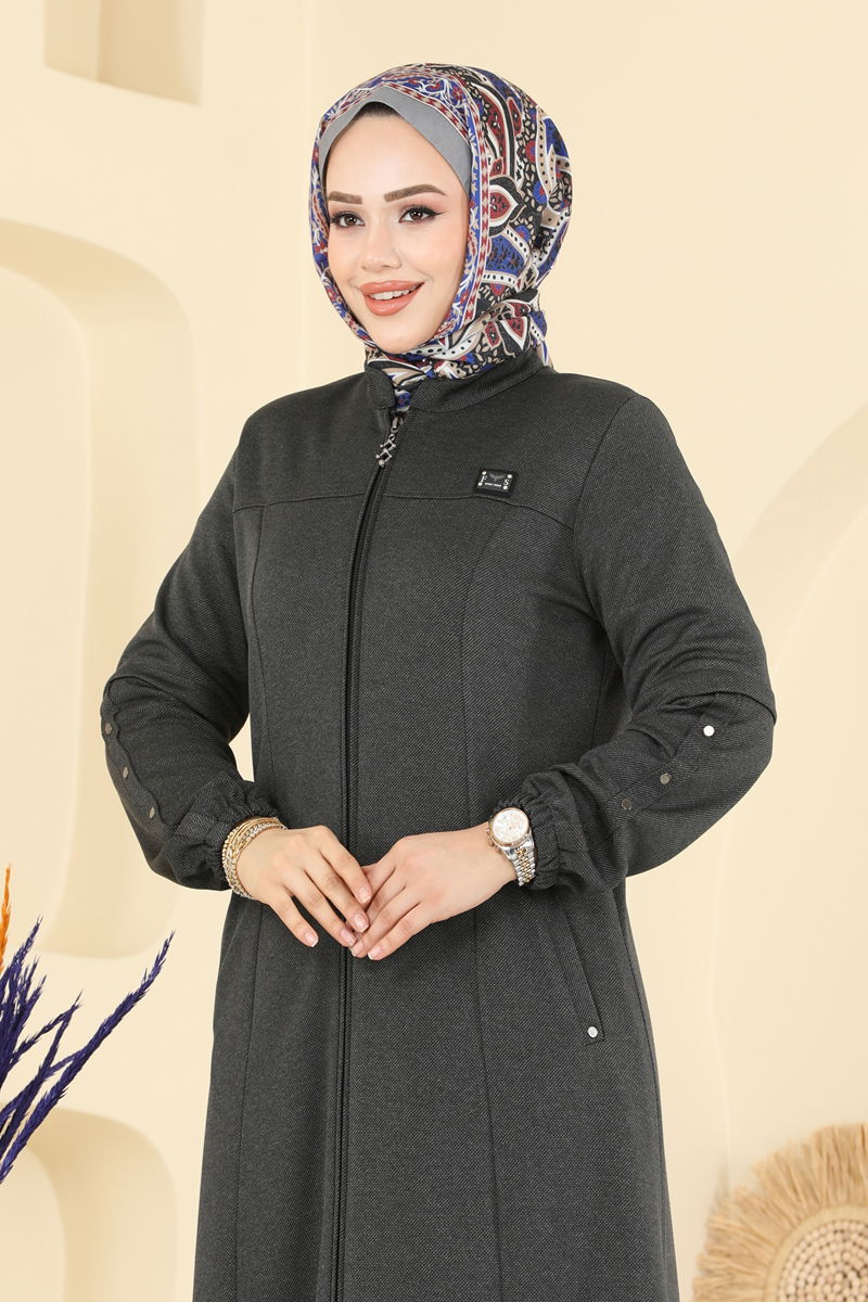 Atlas Kumaş Ferace - Manşeti Lastikli Model - Antrasit Rengi