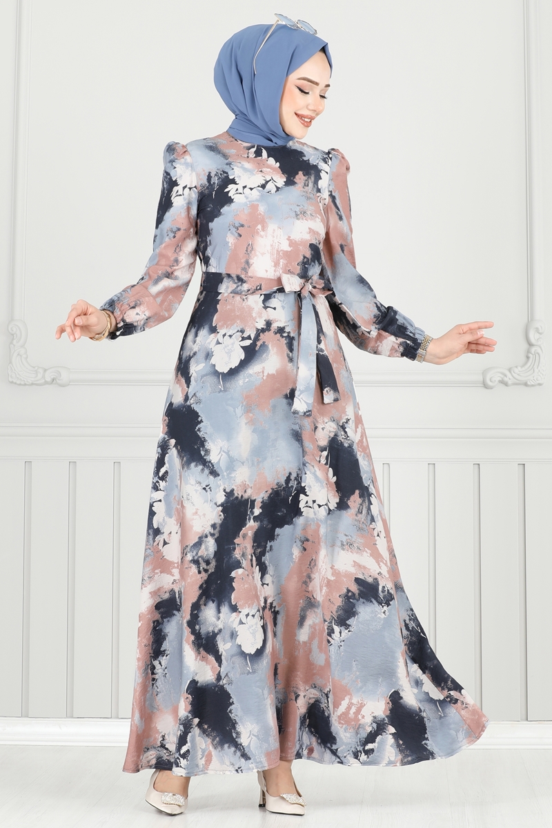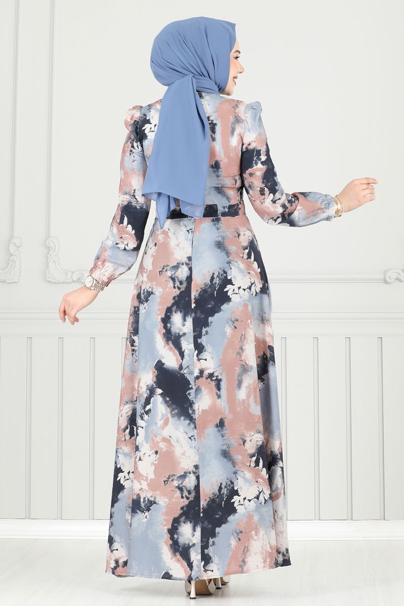 Manşeti Lastikli Desenli Elbise 9034S324-MS Laci