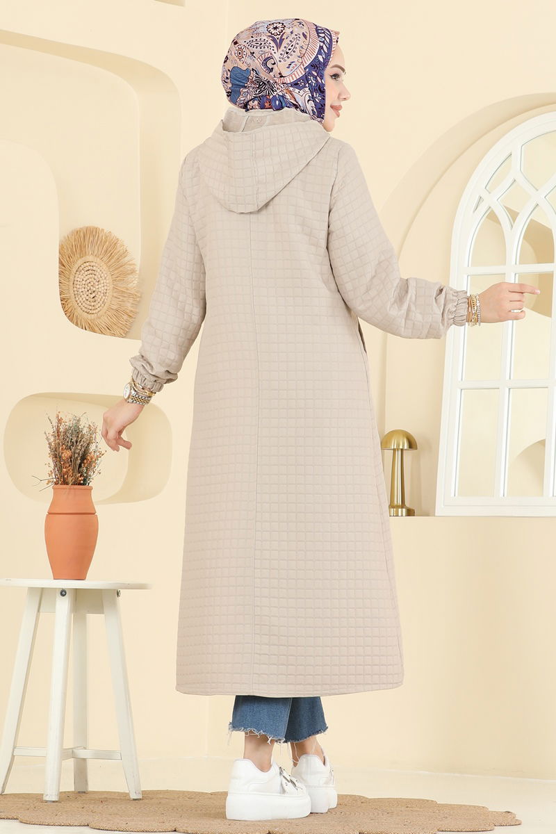 Ürün Detayları: Ürünümüz tesettür giyim koleksiyonunun en yeni parçalarındandır. Kapüşon çıkarılabilir özelliğe sahiptir, kullanımı opsiyoneldir. Ürün kapşonlu ve düğme kapamalıdır. Astarsız bir yapıya sahiptir. Cep detayı bulunur. Kolda esnek lastik kullanılmıştır. Işık ve çekim tekniklerine bağlı olarak ürün renginde ufak farklılıklar görülebilir.