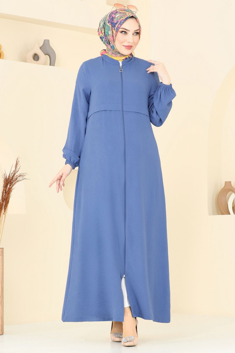 Manşeti Lastikli Pardesü Ferace 376DVL817-MS İndigo