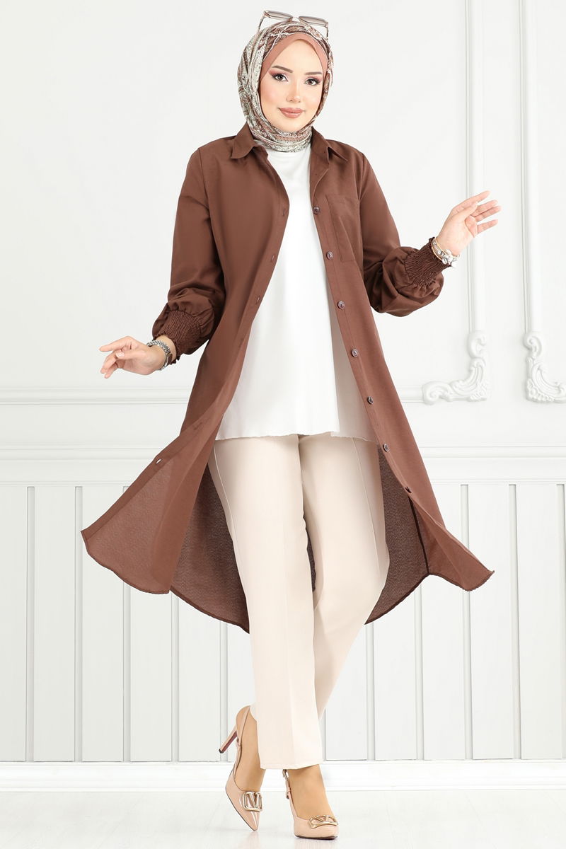 Manşeti Lastikli Tesettür Tunik 282ASN888-MS Kahve