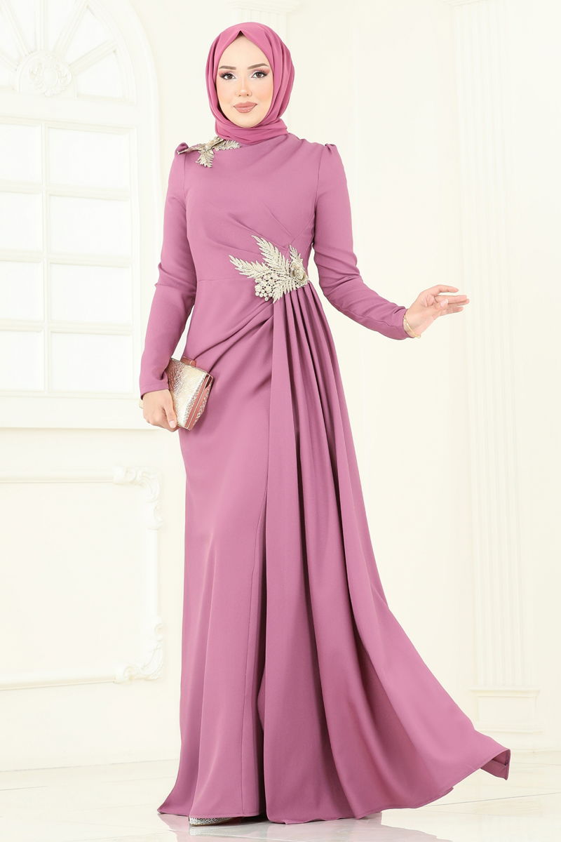 Nakış Detay Abiye Elbise ASM2810-MS Gül Kurusu
