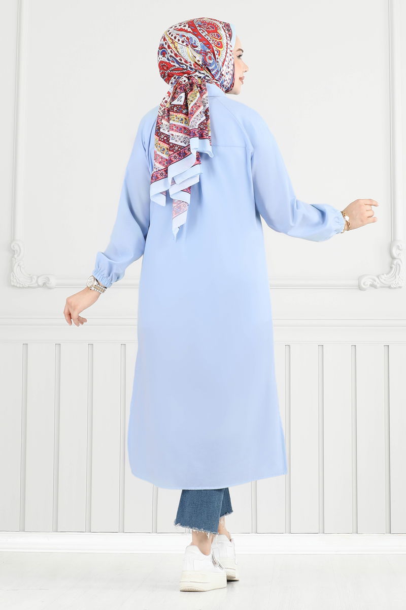 Nakış İşlemeli Tesettür Tunik 4095PM271-MS Bebe Mavisi