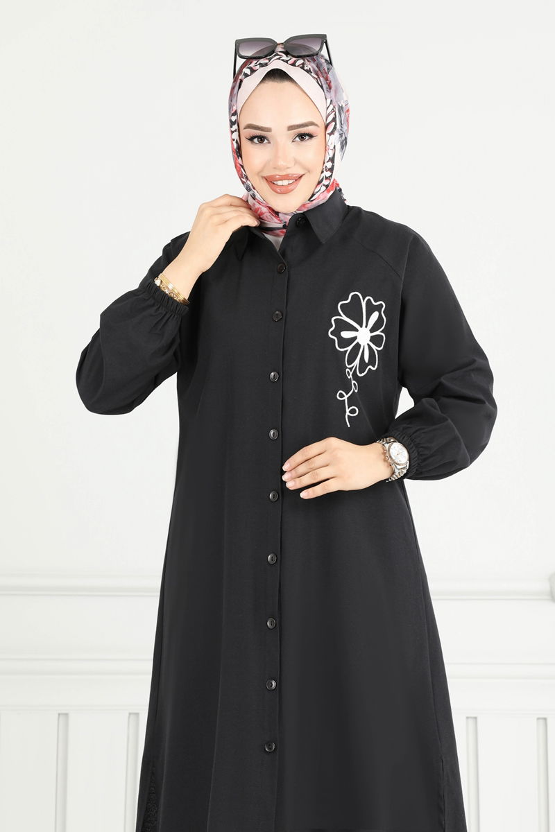 Nakış İşlemeli Tesettür Tunik 4095PM271-MS Siyah