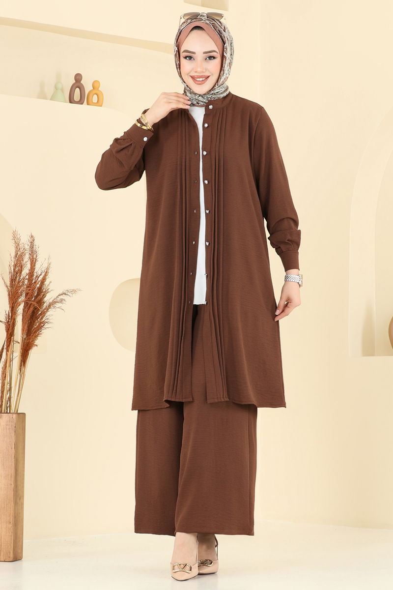 Nervür Detay Tesettür Takım 3104HBS856-MS Kahve