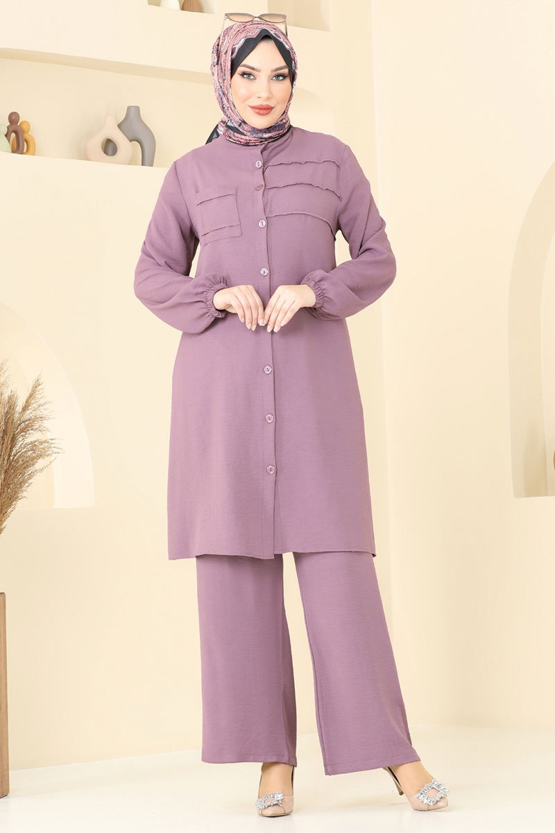 Nervür Detay Tesettür Takım 372DVL817-MS Gül Kurusu