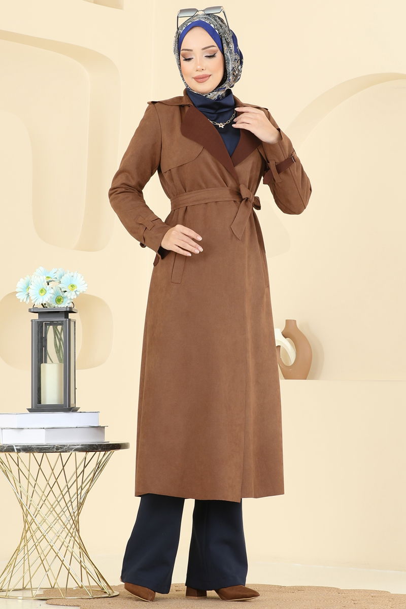Ürün Detayları: Bu parça yeni sezon tesettür modasına aittir. Astar içermez. Detaylar sabittir, kemerin arkası açıktır. Kemer kap ile birlikte verilir, kullanımı opsiyoneldir. Cep detayı mevcuttur. Kol ucu bağlamalıdır ve ayarlanabilir.Renkler, çekim koşullarına bağlı olarak değişiklik gösterebilir.