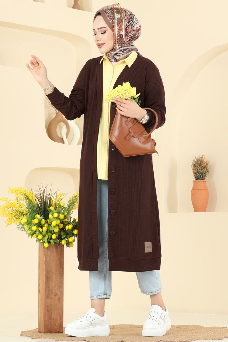 Önden Düğme Detaylı Hırka 6038TEG847-MS Kahve