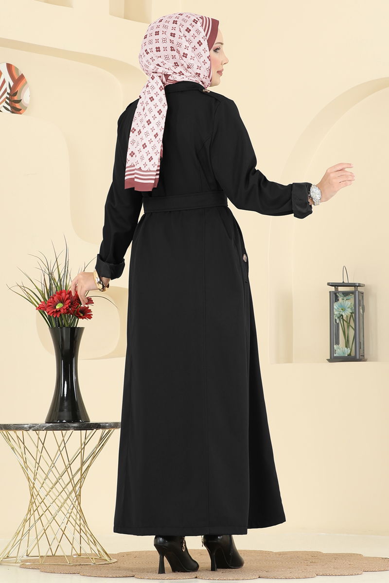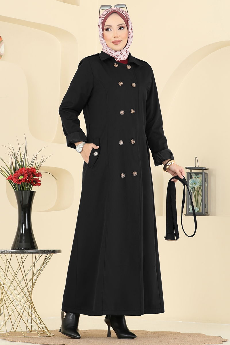 Önden Düğmeli Bondit Trençkot 4901ORG1169-MS Siyah