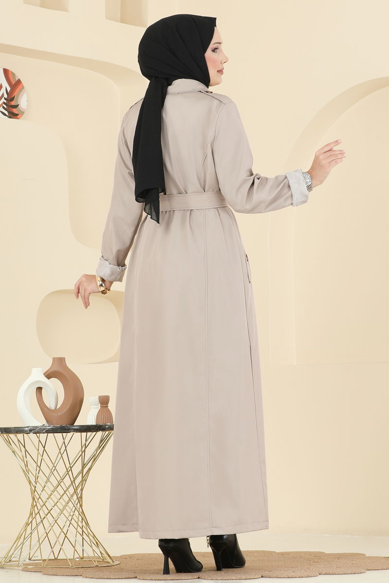 Önden Düğmeli Bondit Trençkot 4901ORG1169-MS Taş