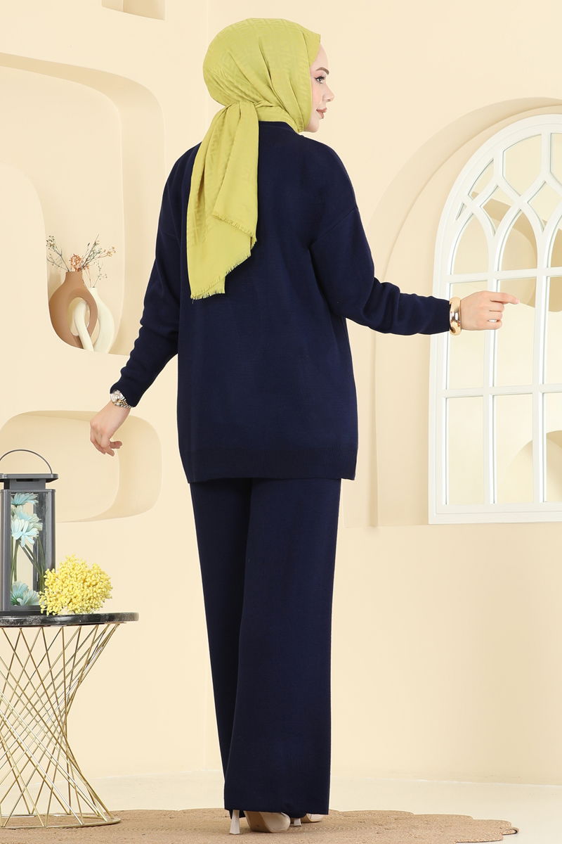 Ürün Detayları: Yeni sezon tesettür modasına uygun olarak tasarlanmıştır. İki parçadan oluşan set. Hırkada ön kısımda düğme detayları mevcut. Astarsızdır ve şeffaf görünüm sağlamaz. Görseldeki bluz sete dahil değildir. Bluz sadece kombin önerisi olarak kullanılmıştır. Pantolonun bel kısmı kısmen lastiklidir.Resim çekimleri nedeniyle renklerde farklılık gözlenebilir.