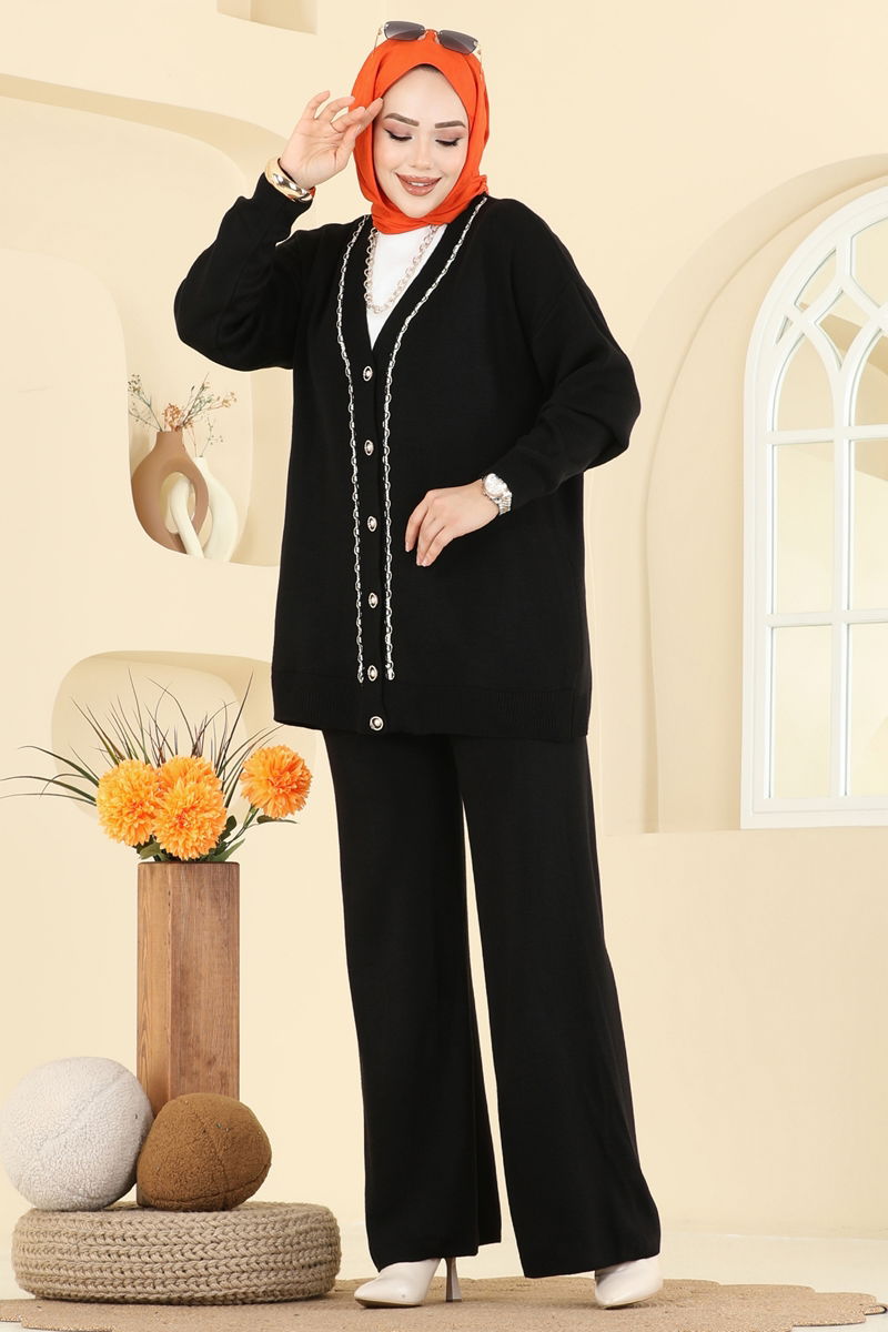 Önden Düğmeli Hırkalı Takım 25302BRZ597-MS Siyah