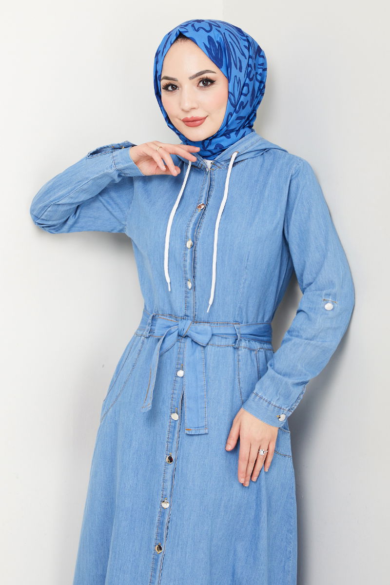 Önden Düğmeli Kot Elbise Ferace 25021MTS1095-M Açık Kot