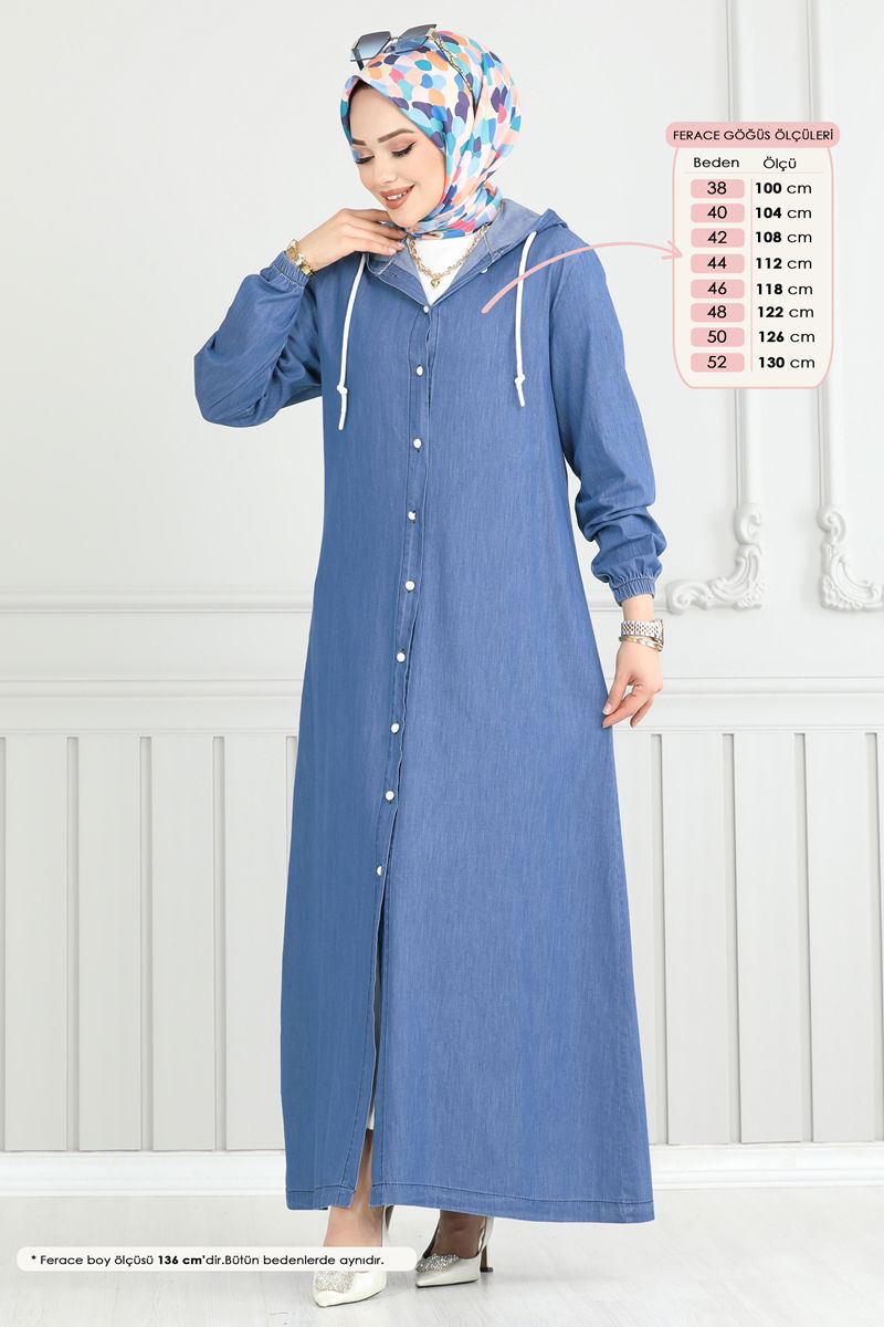 Önden Düğmeli Kot Ferace - Açık Kot