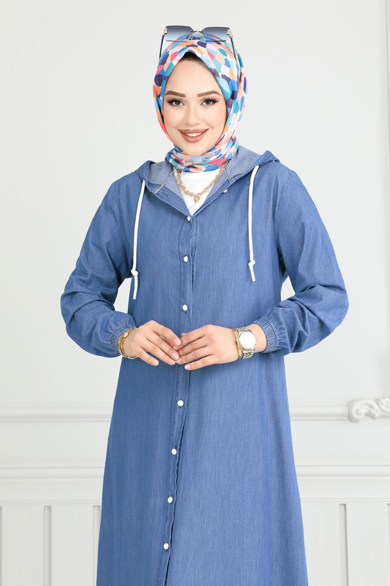 Ürün Detayı: Sezonun yeni tesettür giyim koleksiyonundandır. Ürün kapüşonlu yaka ile tasarlanmıştır. Tam boy önden düğmeli olup kolay giyilip çıkarılabilir. İç kısmı astarsızdır. Kapüşon sabit olarak ürüne dikilmiştir. Kol manşetlerinde lastik kullanılmıştır. Konsept çekimlerde ışık farkı nedeniyle renk tonları değişkenlik gösterebilir.