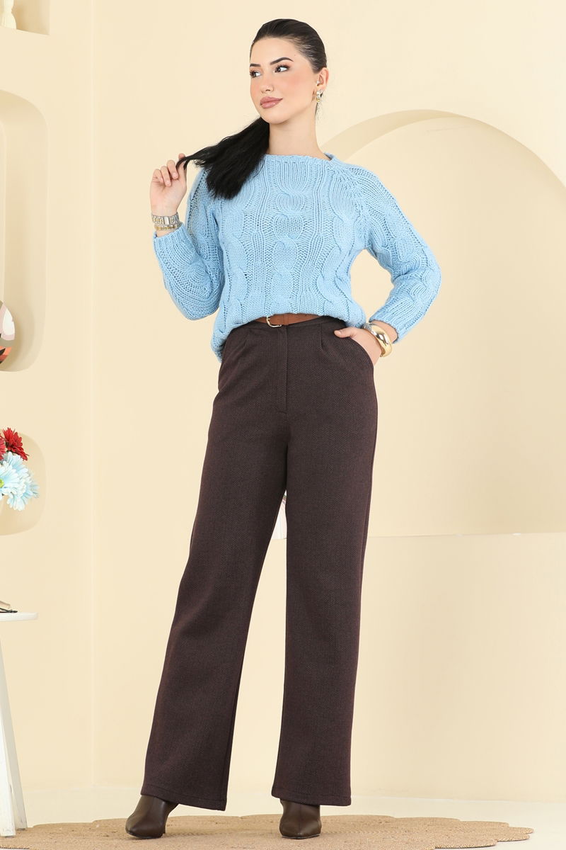 Önden Düğmeli Palazzo Pantolon 4131PM271-MS Kahve