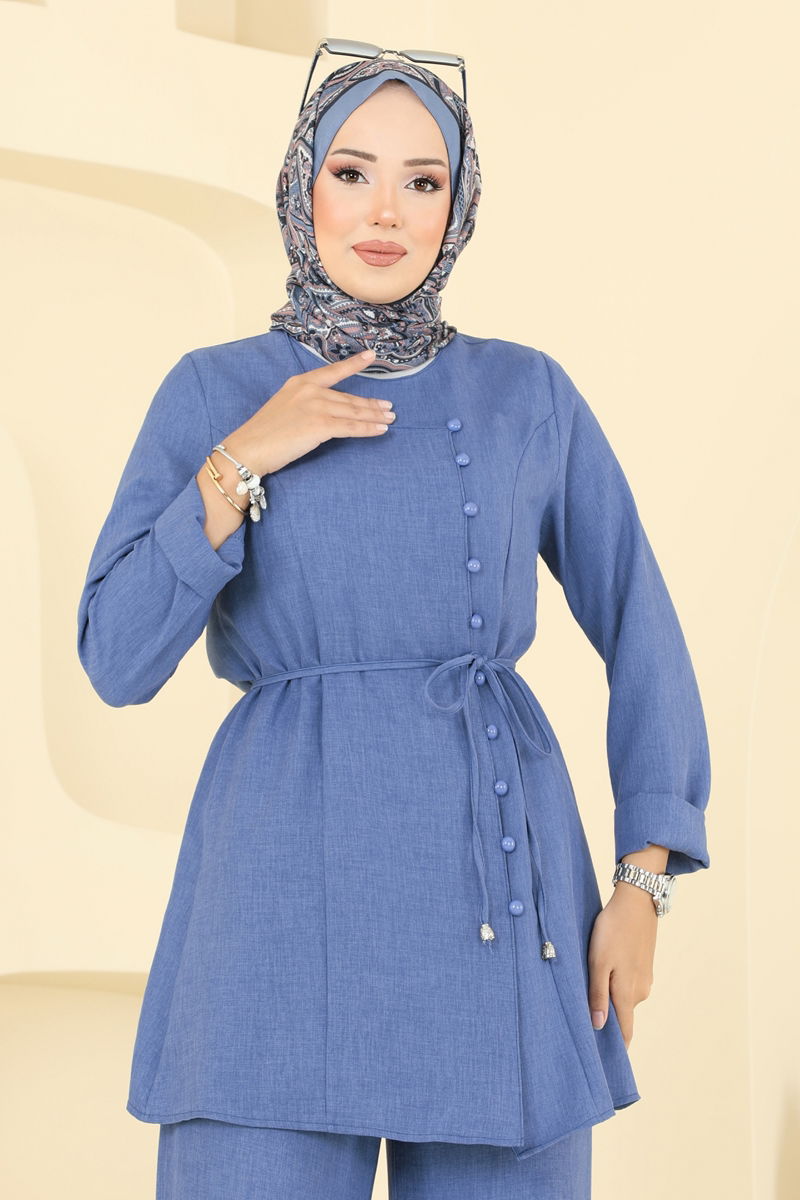 Önden Düğmeli Sofia Takım 2720SL432-MS İndigo