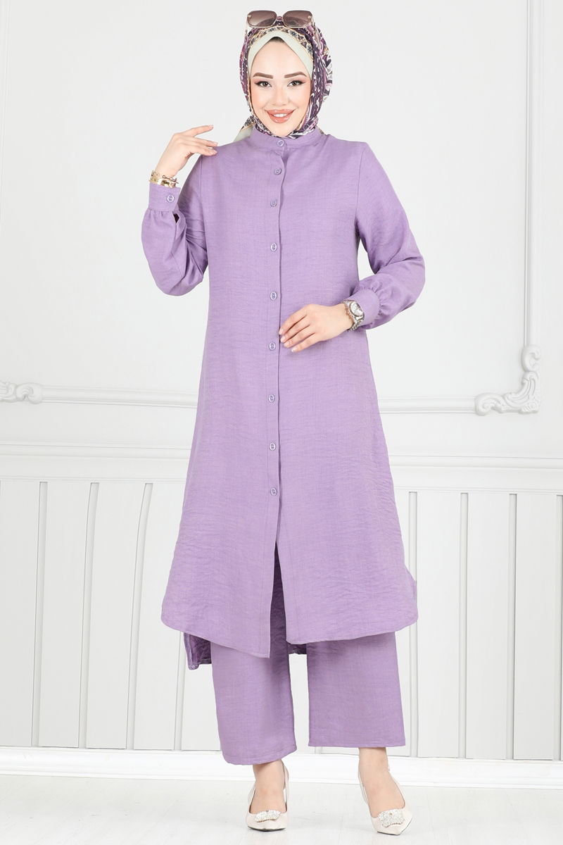 Önden Düğmeli Sofia Takım 407DVL817-MS Lila