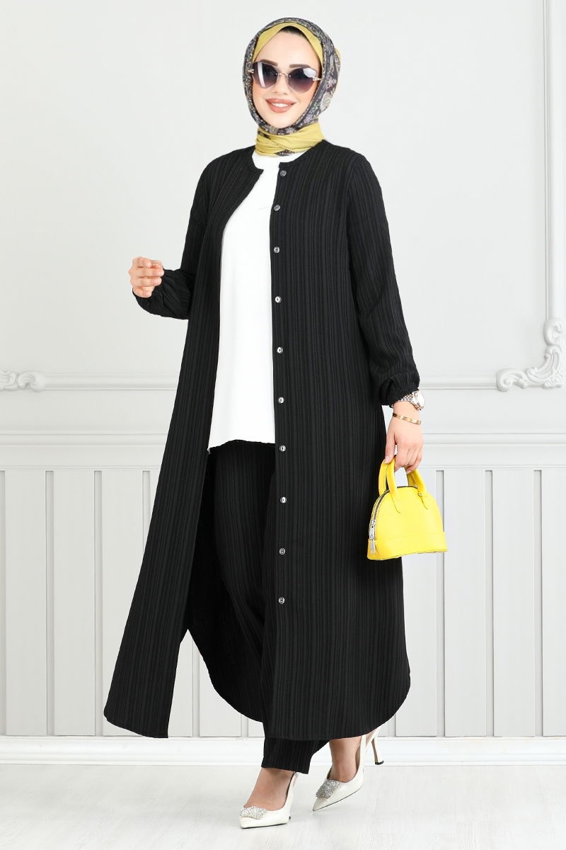 Önden Düğmeli Tesettür Takım 5676END900-M Siyah