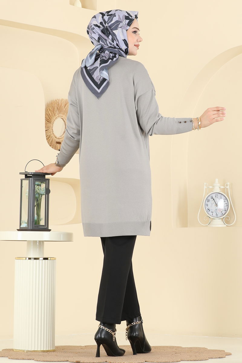 Önden Düğmeli Triko Hırka 6031UZ662-MS Gri